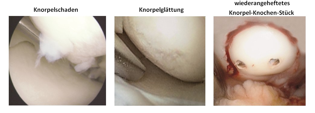 Maßnahmen am Gelenkknorpel, wie Knorpelglättung, Anbohrungen und Mikrofrakturierungen, AMIC sowie Wiederanheften abgelöster Knorpel-Knochen-Anteile