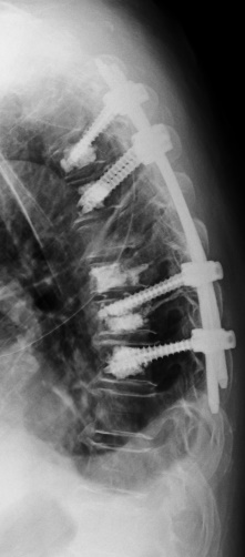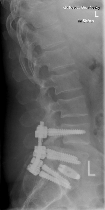 Der Begriff Osteochondrose beinhaltet den Verschleiß eines oder mehrerer Bewegungssegmente der Wirbelsäule. Häufigste Lokalisation ist der Zwischenwirbelraum der unteren Lendenwirbelsäule. Dabei kann es durch den Verschleiß der Bandscheibe zur lokalen Rücken/Nacken-Beschwerden kommen oder durch daraus resultierende Instabilität eine Spinal- oder Nerveneinengung mit ausstrahlenden Beschwerden verursachen. Im fortgeschrittenen Stadium kann dies auch zu ausgeprägten Wirbelsäulenverkrümmungen führen, die dann möglicherweise einen "Ganzwirbelsäulenschmerz" verursachen. Die Therapie der Wahl bei Osteochondrose an der Lendenwirbelsäule ist nach Ausschöpfung der konservativen Therapiemaßnahmen die Spondylodese oder Versteifung. Dabei werden nur die betroffenen Bereiche mit einem Schraubenstabsystem überbrückt und die verschlissenen Bandscheiben durch einen Platzhalter ersetzt.