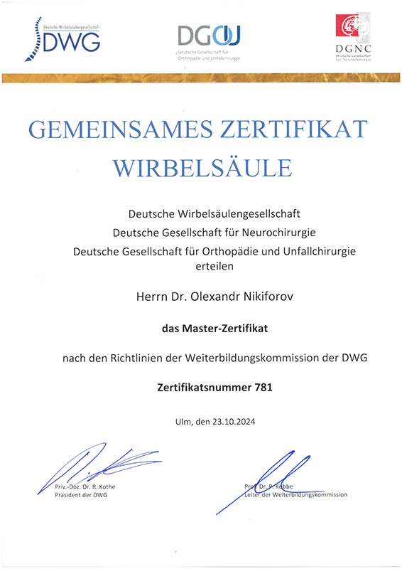 Facharzt für Orthopädie und Unfallchirurgie, manuelle Medizin, Chirotherapie