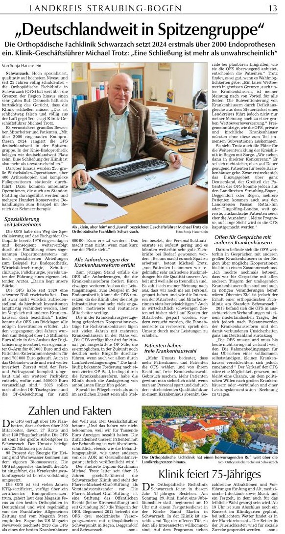 Am 29.03.2025 erschien im Straubinger Tagblatt ein redaktioneller Beitrag von unserem Klinik-Geschäftsführer Michael Trotz.