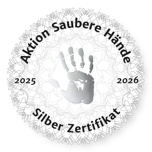 Die Klinik nimmt am Hand-KISS und an der Aktion Saubere Hände teil. Hier vergleichen wir die Qualität der Durchführung der hygienischen Händedesinfektion unserer Mitarbeiter*innen mit den Referenzwerten des Nationalen Referenzzentrums.